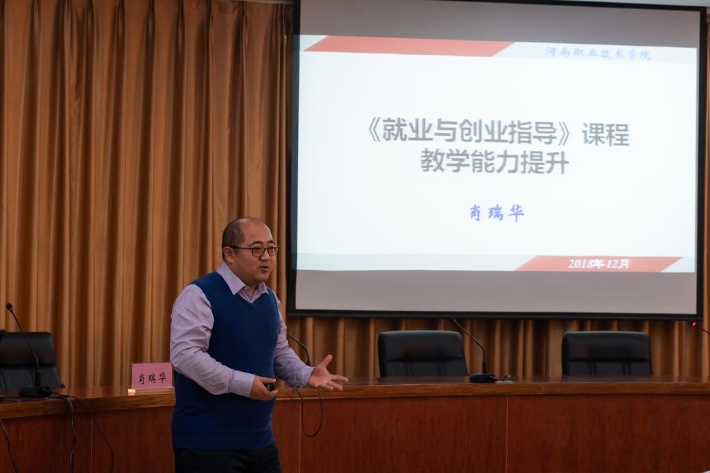 肖瑞华博士是国际生涯规划师、团中央KAB创业教育项目培训师,此次针对公司就业指导课程开设的实际情况,对就业指导课程的要点进行了解析,并分享了多种实用的教学工具,引导了互动式教学的新思路新方法;王永能老师是国家人社部网络创业(电商)项目技术标准开发专家,人社部网络创业(电商)项目国家级培训师,此次就互联网创业专题做了深入的分析,并针对中国互联网+老员工创新创业大赛赛事指导做了专题讲述。两位老师的培训课程设计合理,教学方法得当,受到了参训教师的好评。(供稿:田嘉,审稿:张琳)