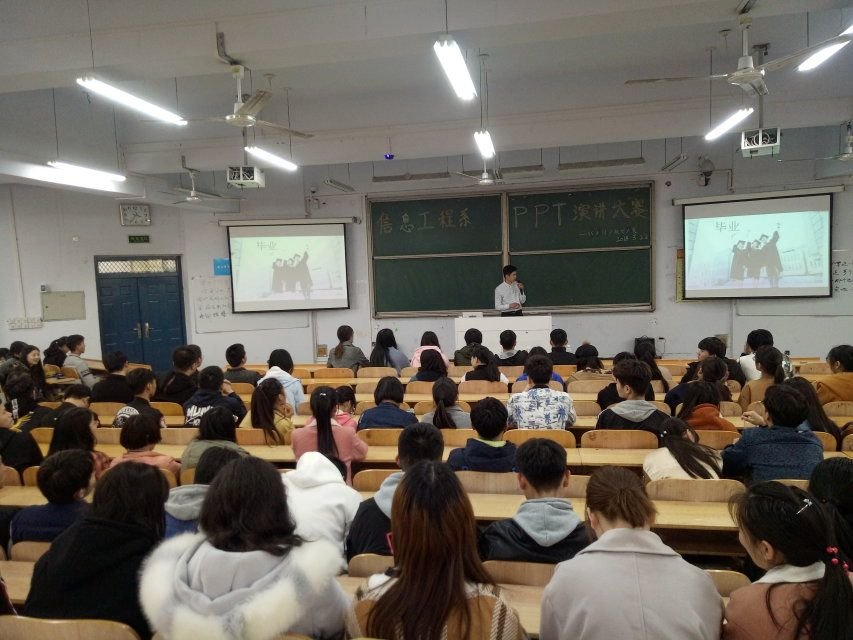 3月29日,信息工程公司在教室3110举办就业创业规划PPT演讲大赛,信息工程系各班员工代表参与此次活动。