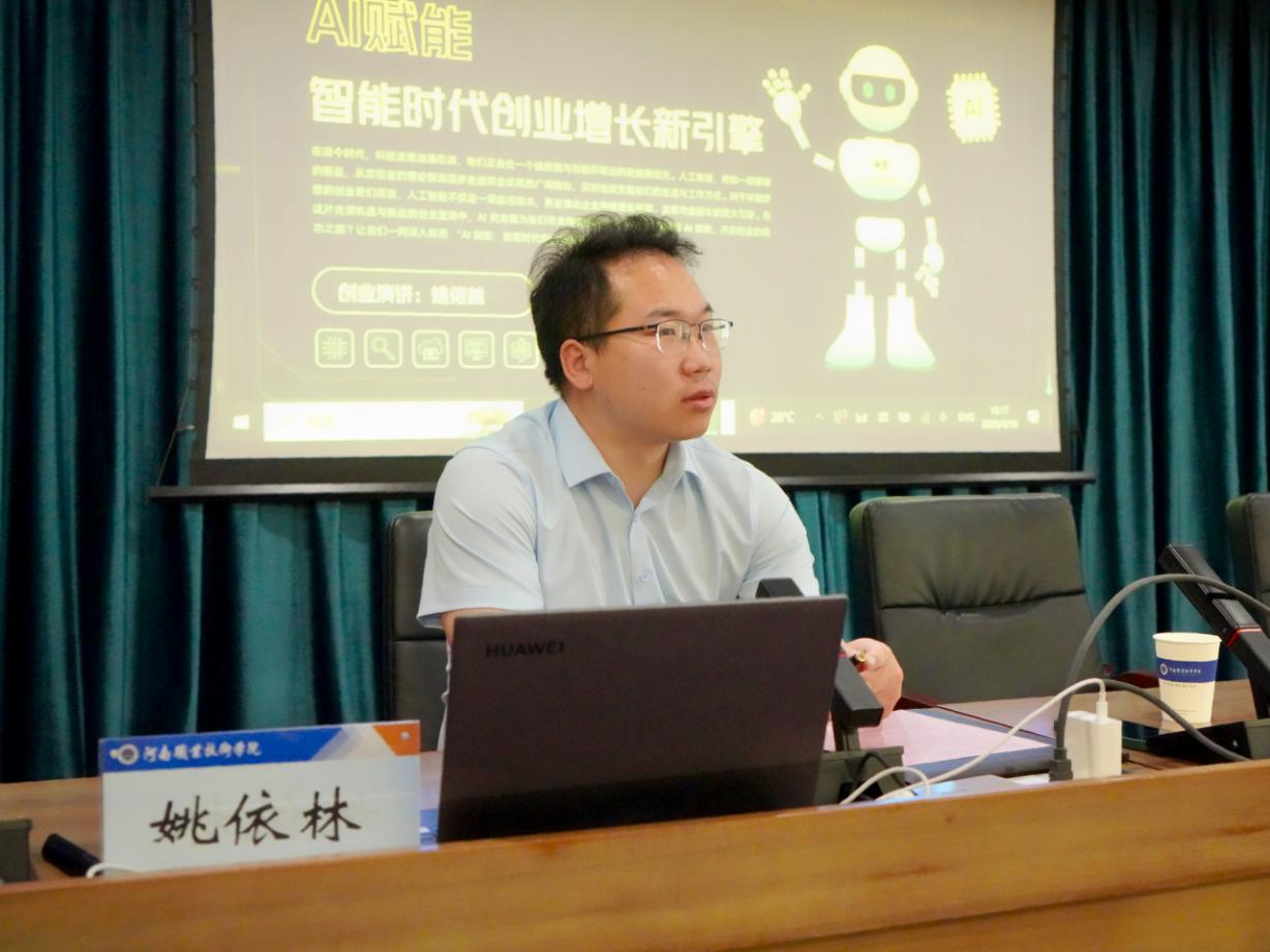 本次创业专题讲座由河南北天辰电子商务有限公司总经理姚依林主讲。姚依林是yl6809永利2019届计算机网络专业毕业生,他于2017年创立公司,专注软件开发与影视传媒领域。历经8年深耕,凭借优质服务,与国企、高校、行政单位等达成合作。在讲座中,他以“Ai赋能——智能时代创业增长新引擎”为主题,结合自身创业经历,分享了在人工智能时代捕捉发展机遇、将人工智能融入公司业务的经验,为在场师生带来了一场精彩的创业思维盛宴,赢得了阵阵掌声。