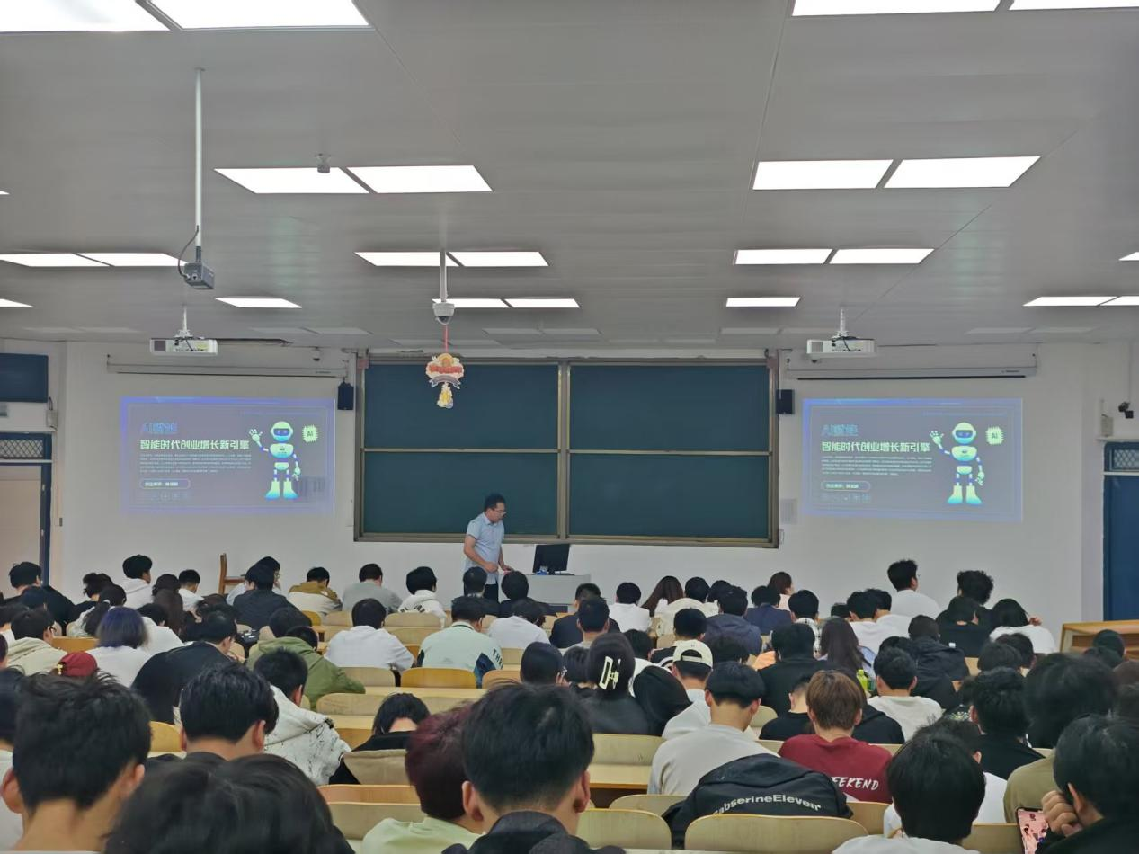 姚依林以《AI 赋能:智能时代创业增长新引擎》为主题,深入浅出地阐述了人工智能在当今创业领域的重要作用与巨大潜力。他结合自身丰富的创业经历,分享了如何利用 AI 技术为创业项目注入强大动力和应用AI的挑战与应对,激发了同学们对创业的热情与对 AI 技术的浓厚兴趣。