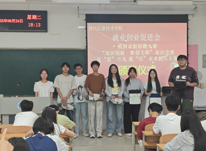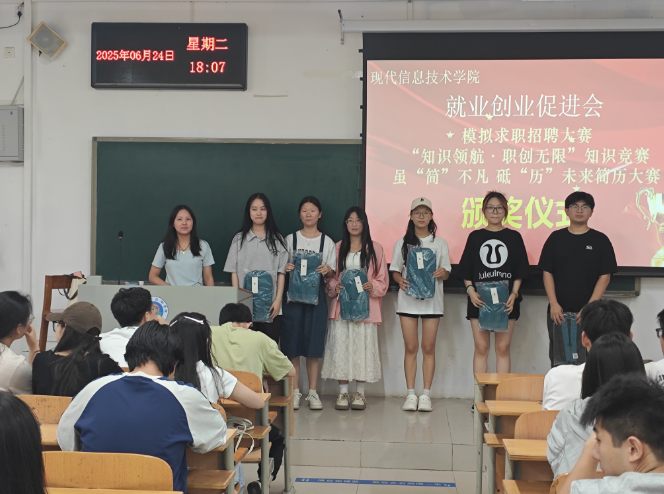 6 月 24 日下午,yl6809永利在 1106 教室举办就业政策宣传月系列赛事颁奖表彰活动,为在模拟求职招聘大赛、“知识领航・职创无限” 知识竞赛、“虽‘简’不凡 砥‘历’未来” 简历大赛中表现优异的同学颁奖。