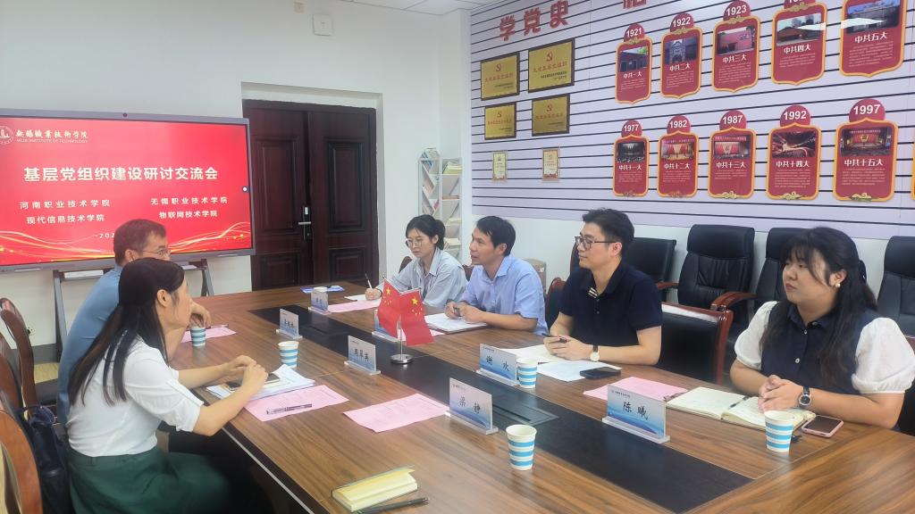 物联网技术公司党总支书记谢欢、党总支副书记徐锋、员工第一党支部书记陈曦和党总支专职组织员单影等参加研讨交流会。谢欢对公司党总支书记周翠英一行三人的到来表示热烈的欢迎,并介绍了无锡职业技术公司物联网技术公司的发展历程、公司基层党组织建设经验做法、双高专业群建设和高技能人才培养等情况。