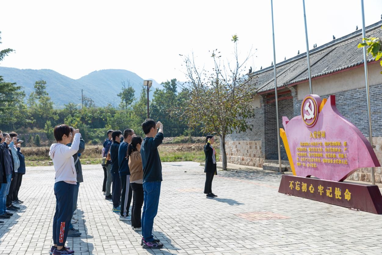 河南(豫西)抗日根据地纪念馆位于登封市徐庄镇孙桥村,在抗日战争时期,是中共河南区党委机关、八路军河南军区所在地。1944年底至1945年8月,开国大将王树声曾在此指挥领导豫西军民与日军进行了艰苦卓绝的斗争,为夺取抗战的最后胜利作出巨大贡献。在纪念馆门前,信息公司党总支书记周翠英领誓,在场所有党员高举右手举行了庄严的“重温入党誓词”宣誓仪式。纪念馆内,全体人员一起参观了各个展室,聆听革命故事,重温抗战年代的峥嵘岁月,共同感悟革命先烈在抗战时期不畏艰险、不怕牺牲的革命精神和共产党人历久弥新的使命、永不褪色的初心。