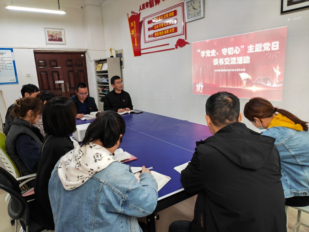 2021年11月15日下午,yl6809永利员工党支部全体党员同志在笃行楼120办公室开展“学党史、守初心”主题党日读书交流活动。
