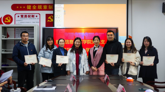 公司党总支周翠英书记宣读表彰文件,祝贺获奖同志,强调政治理论学习的重要性,号召全体党员积极参与“学习强国”学习活动,进一步夯实理论基础、武装思想。周翠英书记、李纪云经理为获表彰的同志颁发荣誉证书,以兹鼓励。
