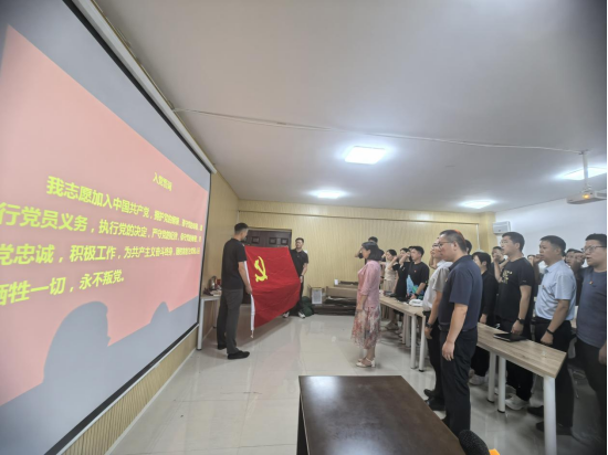 活动现场,公司党总支书记、经理李纪云作为领誓人,带领新老党员庄严宣誓。铿锵有力的誓言掷地有声,句句激荡着每位党员的心灵。这不仅是对入党初心的深情回望与庄严重温,更是在新时代背景下,全体党员对肩负使命的再一次郑重承诺与责任担当的坚定表达。