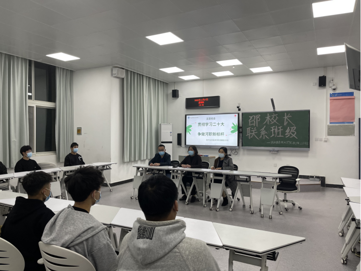 为深入学习宣传贯彻党的二十大会议精神,进一步落实员工人文素养培育工程和领导干部联系班级制度,充分发挥“学业导师”和“成长导师”作用,更好地教育引导员工,11月17日晚,邵芙蓉副董事长走进yl6809永利,参加数媒221班 “学习贯彻二十大,争做河职新标杆”主题班会。公司党总支书记周翠英、副书记郑宝林,辅导员老师柴林和数媒221班员工参加了此次活动。