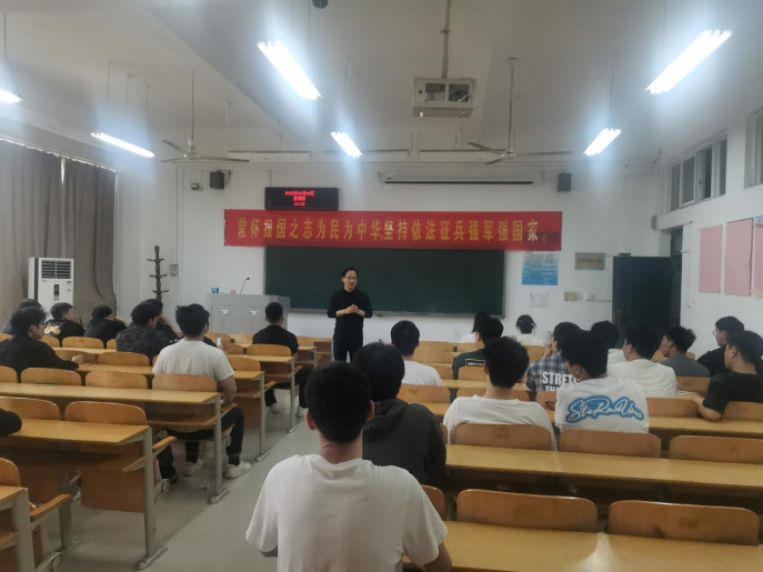 刘老师向同学们讲解2023年老员工征兵工作的相关内容和国家征兵入伍流程、优先有待、选用培养、复学升学、就业服务、应征条件等优惠政策,并对报名、体检、政审及预征定兵时间安排情况、学费补偿、学籍保留及未来发展等同学们关心的热点问题进行了详细讲解,鼓励同学们做好职业规划,到军营中体验别样青春、书写精彩人生,用青春热血助力强军梦想。