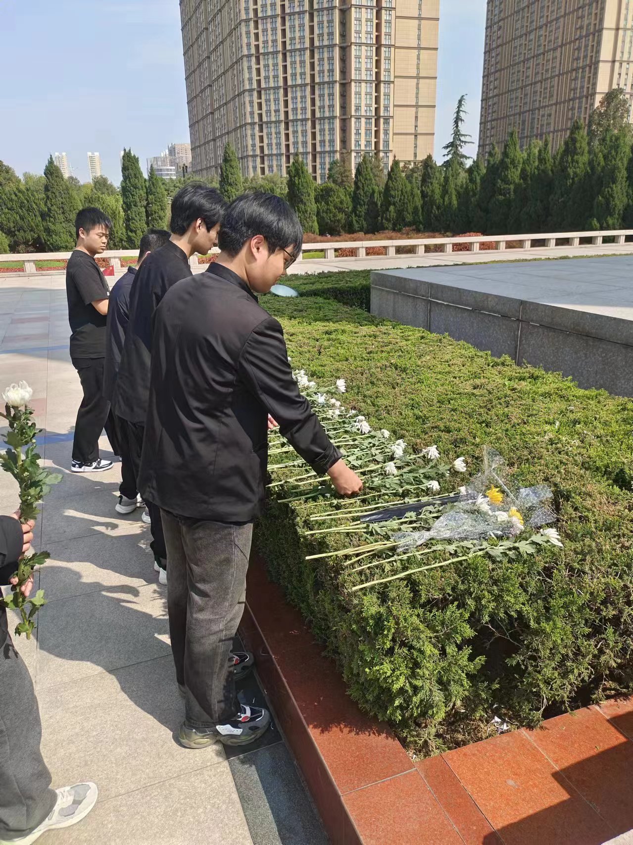 在缅怀革命先烈的同时我们要记住中国共产党团结带领中国人民以“为有牺牲多壮志,敢教日月换新天”的大无畏气概,书写了中华民族几千年历史上最恢宏的史诗。最后全体师生代表敬献了鲜花并绕场一周来寄托哀思,缅怀先烈的丰功伟绩。(供稿:李超林 审稿:郑宝林)