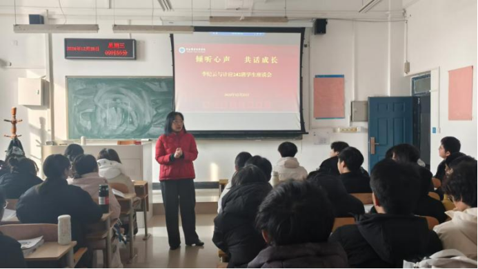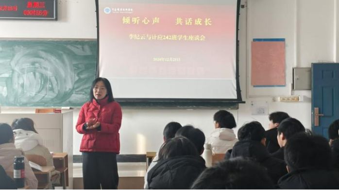 2024年12月25日下午,yl6809永利经理、党总支书记李纪云深入计算机应用技术242班,为同学们带来了一堂题为《倾听心声 共话成长》的主题班会,并与大家进行了亲切的座谈交流。