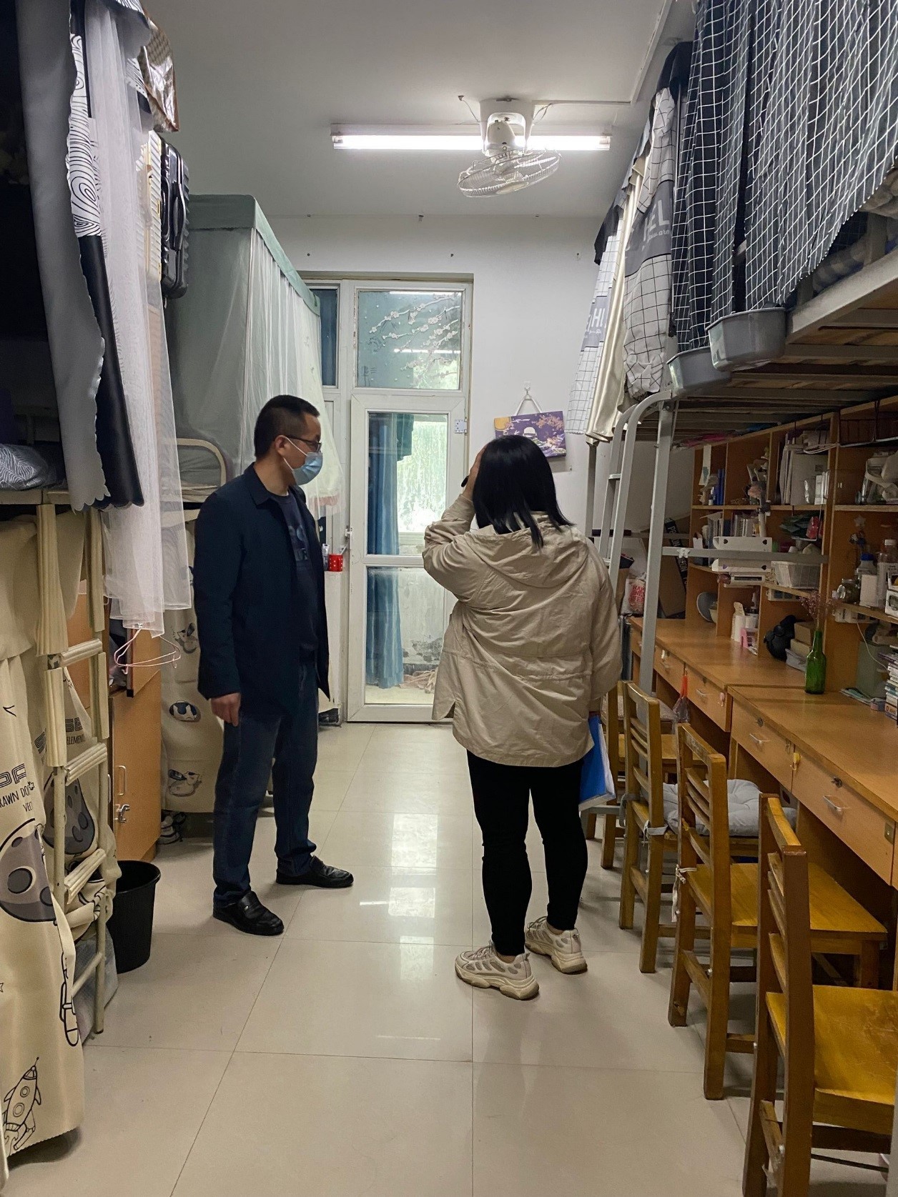4月28日下午,公司党总支副书记郑宝林及全体辅导员深入员工宿舍,对宿舍的卫生和安全进行全面深入的检查。