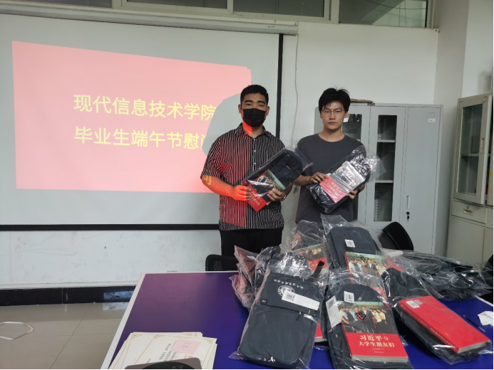 慰问中,党总支副书记郑宝林和各位老师详细询问了同学们的专升本复习情况,就业去向,对同学们在校学习和表现给予充分肯定,叮嘱同学们做到文明离校。郭华老师指出,端午节是中国的传统节日,承载了厚重的文化历史,同学们要珍惜时光,学习屈原“路漫漫其修远兮,吾将上下而求索”的执着精神,筑牢民族精神和家国情怀,用自己的坚持和努力在青春赛道上跑出各自的最好成绩,创造更加精彩的未来。