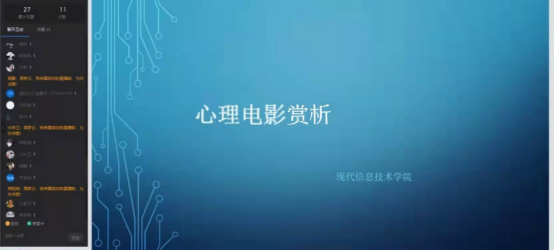 为了普及心理健康知识,让同学们深刻感受心理学在现实生活中的魅力,11月12日晚,公司心理部组织21级心理委员通过钉钉,线上开展了主题为“放飞心灵”的心理电影赏析活动。