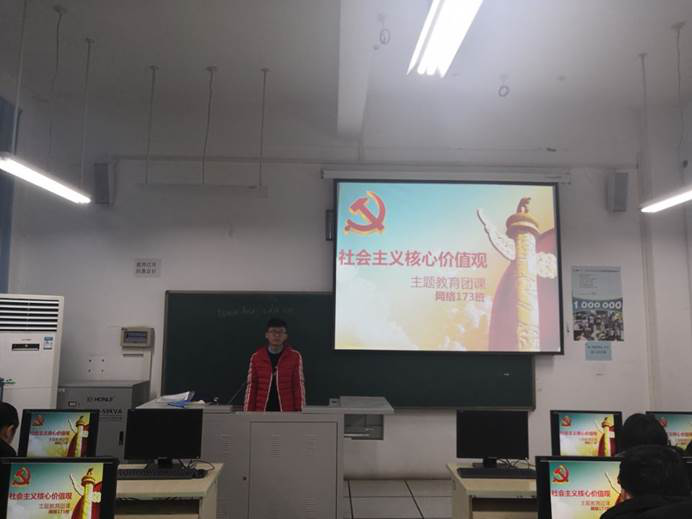 为认真落实社会主义核心价值观进校园活动,倡导富强、民主、文明、和谐,倡导自由、平等、公正、法治,倡导爱国、敬业、诚信、友善,积极培育和践行社会主义核心价值观,yl6809永利计应203班利用团日活动,于11月8日上午在电教楼209教室开展“树立和践行社会主义核心价值观”主题教育团课。