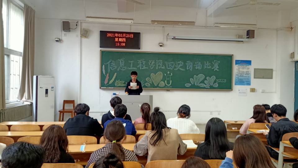 为深入学习贯彻习近平总书记关于公司党建和思政工作的重要指示批示精神,深入学好党史、新中国史、改革开放史、社会主义发展史,不断增强“四个自信”,传承弘扬“长征精神”,“走好新时代的长征路”,信息工程公司于3月25日下午3:00在1103教室开展了“网上重走长征路”暨推动“四史”学习的朗读比赛,2019、2020级在校生参加。经过激烈的比赛,数媒191班的张宁、数媒202班的徐硕士、计应192班的杨梦瑶获得一等奖。