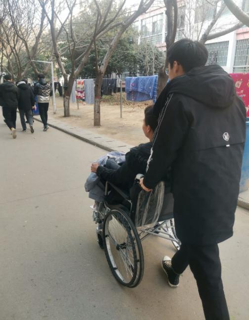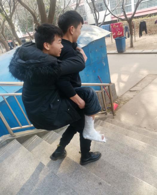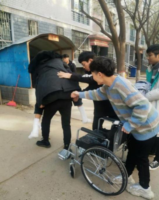 信息工程公司大数据19级员工霍开创同学,由于个人原因导致脚踝意外骨折。为了不让他落下学业,该同学室友主动提出照顾他的日常生活,承担帮助他去上课的任务,并帮助他补习落下的专业课程。室友们在生活中给予了无私热心的帮扶:背行出门、推着去上课、帮助他打水买饭,无微不至的关怀、学习的陪伴,给予霍开创同学极大的鼓舞,让他在这期间体会到同学朋友间真挚的友谊及集体的关怀。