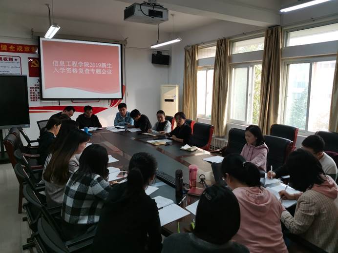 10月23日下午,信息工程公司在综合楼508会议室召开新生入学资格复查专题会议。公司李纪云副书记、所有专兼职辅导员参加了会议。