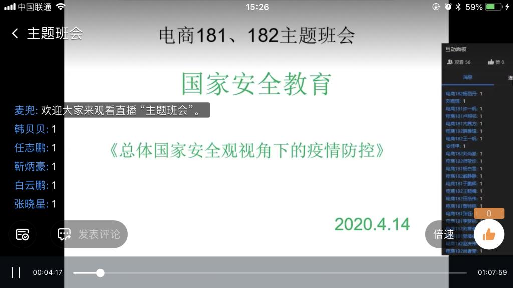 通过本次网络主题班会的召开,进一步增强了同学们维护国家安全的法律意识,使员工们充分认识到目前形势下取得新冠肺炎疫情防控成果的不易,全面提升了同学们自觉维护国家安全的责任感和使命感。(供稿:郭华 审稿:李纪云)