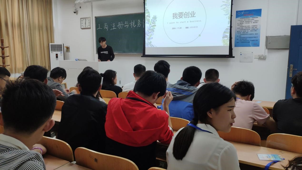 4月18日夜晚,由信息工程公司主办的《工商注册与税务管理的些坑》专题讲座在三号楼开讲。