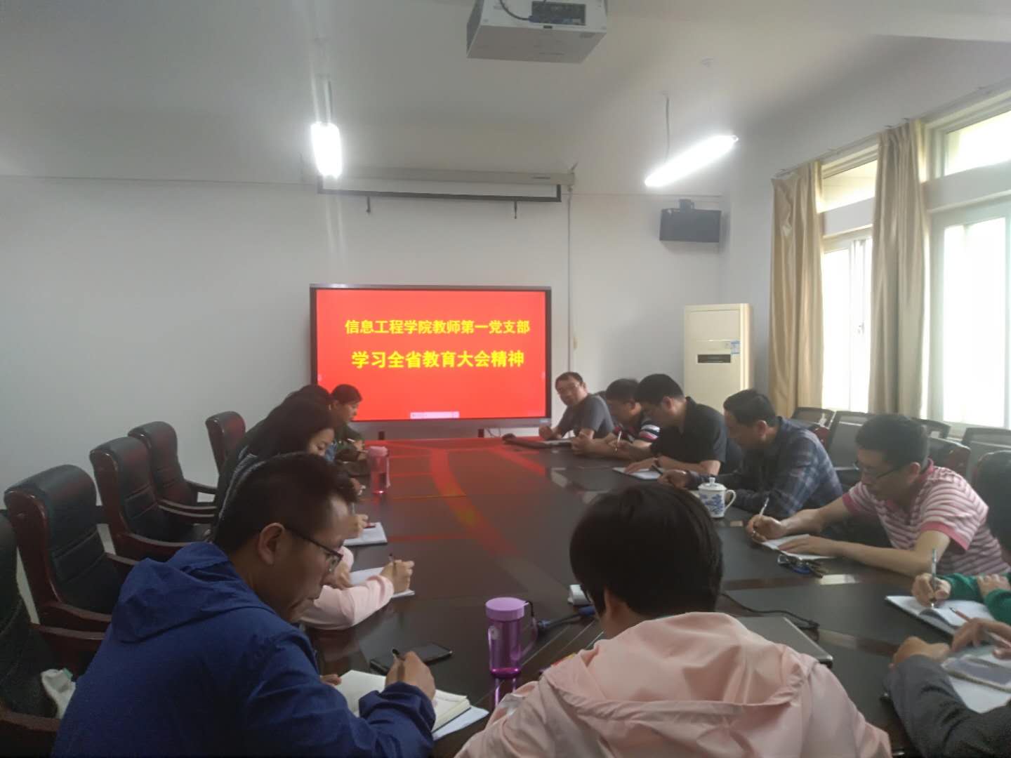 根据公司《关于组织学习全省教育大会精神的通知》要求,5月13日下午,信息工程公司组织全体教职工学习了全省教育大会精神。学习以党支部为单位进行,教师第一党支部在综合楼508、教师第二党支部在综合楼506、教师第三党支部在综合楼505、员工党支部在综合楼120。党支部书记主持学习活动,每位教师围绕全省教育大会精神进行了学习和交流。(供稿:张璞 审稿:李明玉)