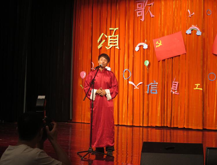 本次文艺汇演在员工会干部们一首优美的《河职欢迎你》的歌声中圆满结束,本次演出不仅展现了我系老员工的风采,同时也抒发了我系师生对中国共产党的热爱。
