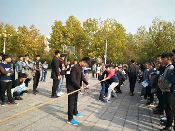 2016年11月16日周三中午,我系16级数字媒体专业和电子商务专业在校国旗台前举行了友谊拔河比赛。