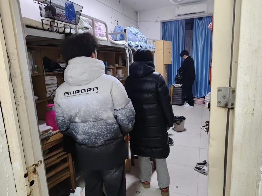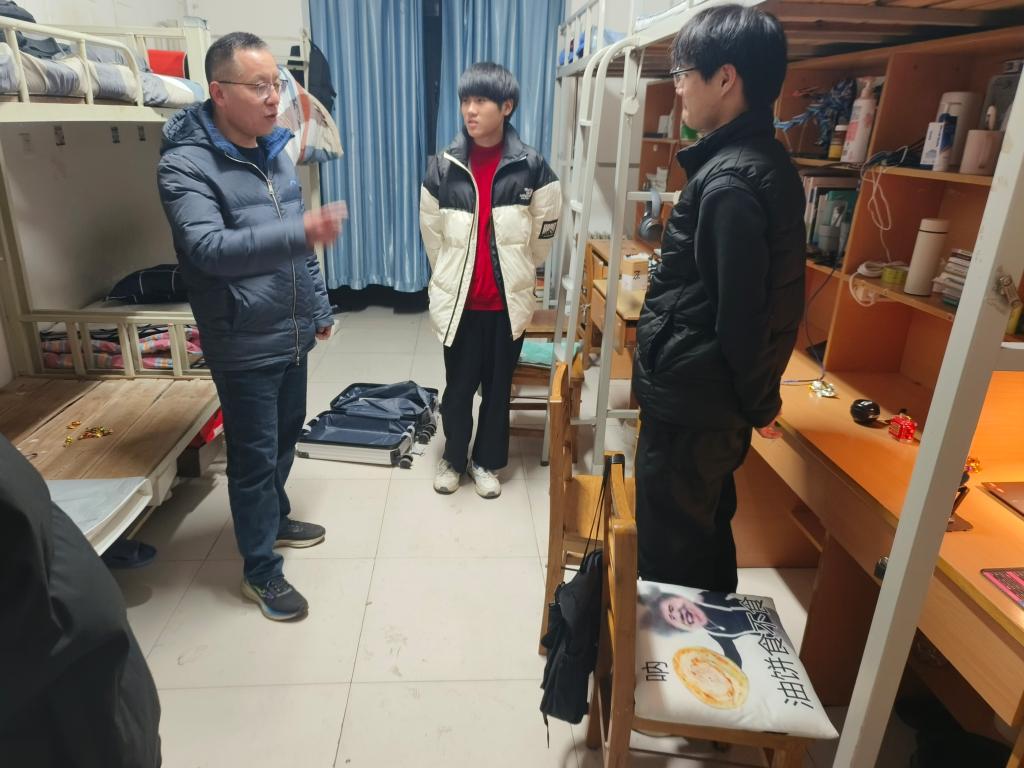 在排查过程中,郑宝林带领辅导员走进宿舍,与同学们亲切交流,询问寒假生活中的趣事、聊聊家常,了解同学们的返家乡社会实践活动情况。同学们也积极分享自己的感受与收获。通过交流,辅导员帮助员工尽快收心,调整学习状态,投入到新学期的学习中。