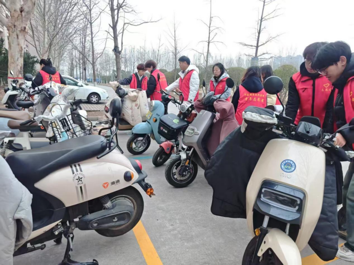 紧接着,公司师生志愿者分赴图书馆西门和笃行楼北侧,开展“文明校园我先行”专项行动。通过规范非机动车停放,累计规范停放电动车40余辆,显著改善了校园环境秩序。