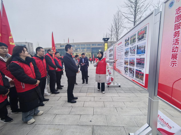 随后,校领导与相关部门负责人实地观摩了各志愿服务团队的成果展。公司党总支书记、经理李纪云系统介绍了公司志愿项目的实施情况。校领导在充分肯定工作成效的同时,围绕深化品牌建设、创新服务模式等方面提出指导意见,为志愿服务工作高质量发展注入新动能。