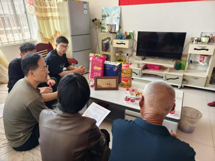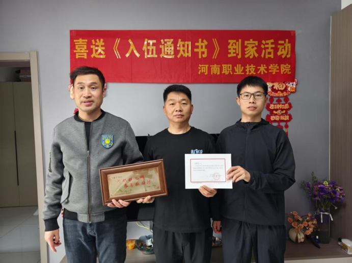 活动中,公司征兵联络员王孟刚老师、董亮亮老师与公司武装部办公室刘明库老师一同驱车近300公里,前往入伍员工家庭。他们为员工家长送上珍贵的入伍通知书、寓意深远的河职专属光荣牌,还将满载关爱的慰问礼品送到家长手中。三位老师与应征入伍员工的父母亲切交谈,详细了解员工家庭情况和个人成长故事,关切地询问入伍员工的思想状况,并向支持公司国防建设的父母们表达了衷心感谢,最后合影留念。