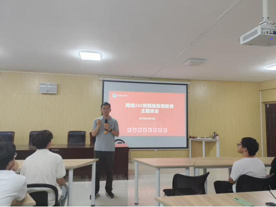 为强化员工网络素养,落实公司意识形态工作要求,4月23日下午,网络242班在笃行楼525会议室召开"筑牢思想防线,共建清朗网络"主题班会。会议由辅导员李超林主讲,班级全体员工参与学习。