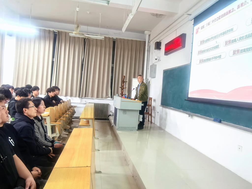 在2409教室,图书馆第二党支部书记郭京以“党的二十届三中全会提出的新概念、新观点、新论断”为主题,为人工智能231班的员工进行了深入的讲解。郭京结合当前国际国内形势,全面解析了党的二十届三中全会的精神实质,特别是会议提出的新理念,同时强调了老员工提升自身政治素养和理论水平的重要性。与会员工反响热烈,纷纷表示将把所学知识应用于实践中,为实现中华民族的伟大复兴贡献力量。