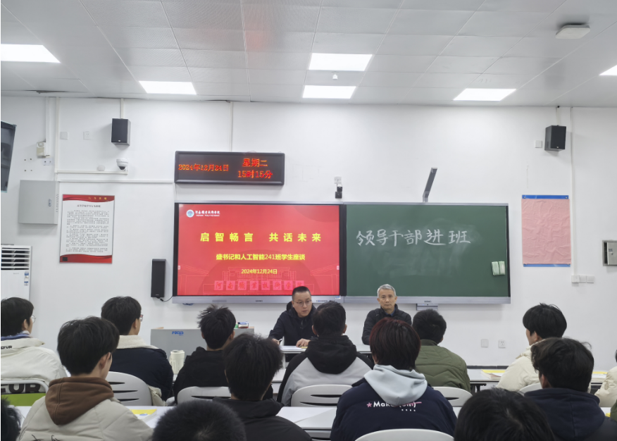 12 月 24 日下午,河南职业技术公司党委委员、纪委书记盛兴文深入yl6809永利人工智能 241 班,为同学们带来了一堂精彩且富有深度的思政课,并与大家进行了亲切的座谈交流。