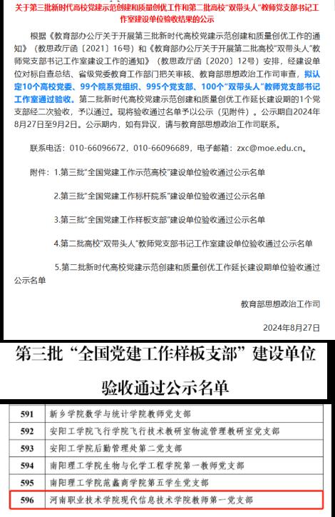 近日,教育部公示了第三批全国党建工作样板支部建设单位验收通过名单,公司教师第一党支部顺利通过验收。