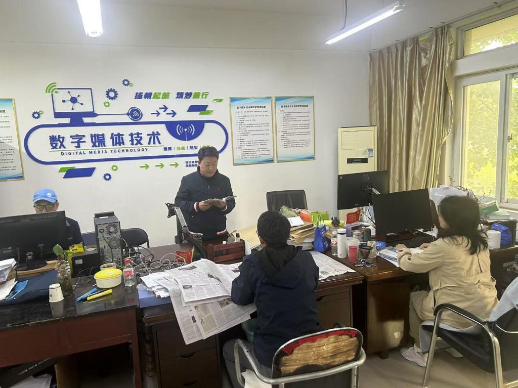 9月26日,数字媒体技术教研室在笃行楼506办公室开展新学期教学检查。本次检查由教研室主任王泽强主持,全体教研室教师参与,审核了2023级专业课程授课计划及2024级新生专业课程授课计划与授课内容,并对上学期期末试卷检查中发现的常见问题进行梳理,同时安排了专业实训课的实践内容。