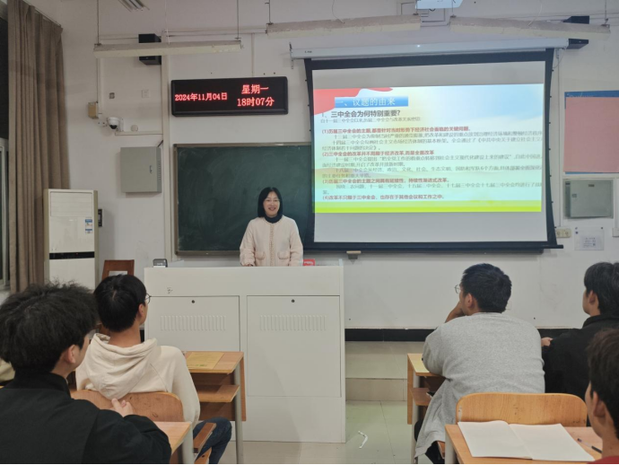 为了深入学习贯彻党的二十届三中全会精神,11月4日,yl6809永利的党总支书记、经理李纪云在4205教室为2023级、2024级的入党积极分子进行了二十届三中全会的宣讲及专题报告。