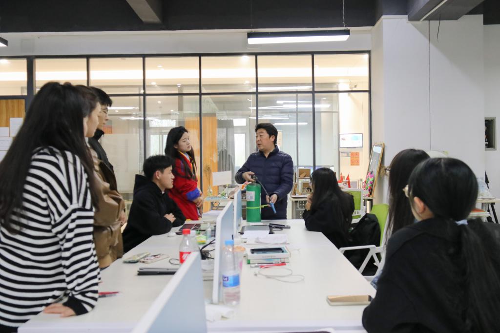 培训结束,教研室对本专业所属的笃行楼三楼307实训室做为实践性教学场地进行消防安全隐患的排查,对在实训室所有教师及员工开展灭火器操作讲解及火灾疏散演练。