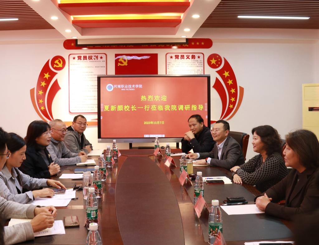 2023年10月7日下午,董事长夏新颜一行莅临yl6809永利走访调研。副董事长邵芙蓉、人事处、科技开发处及党政办等各部门负责人陪同调研。公司领导班子成员、办公室、团总支、实训中心和教研室主任参加了调研座谈。
