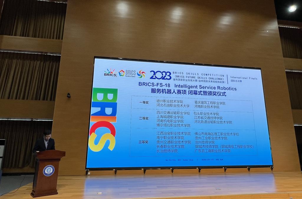 2023年11月8日至12日,2023金砖国家职业技能大赛(金砖国家未来技能挑战赛)比赛服务机器人赛项在德州职业技术公司举行,本次大赛共有自国内36所职业院校的参赛队伍同台共竞。