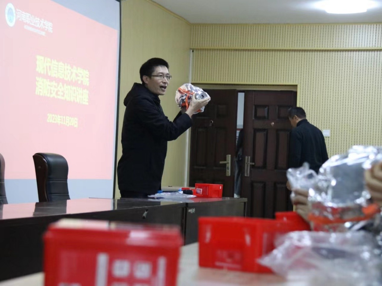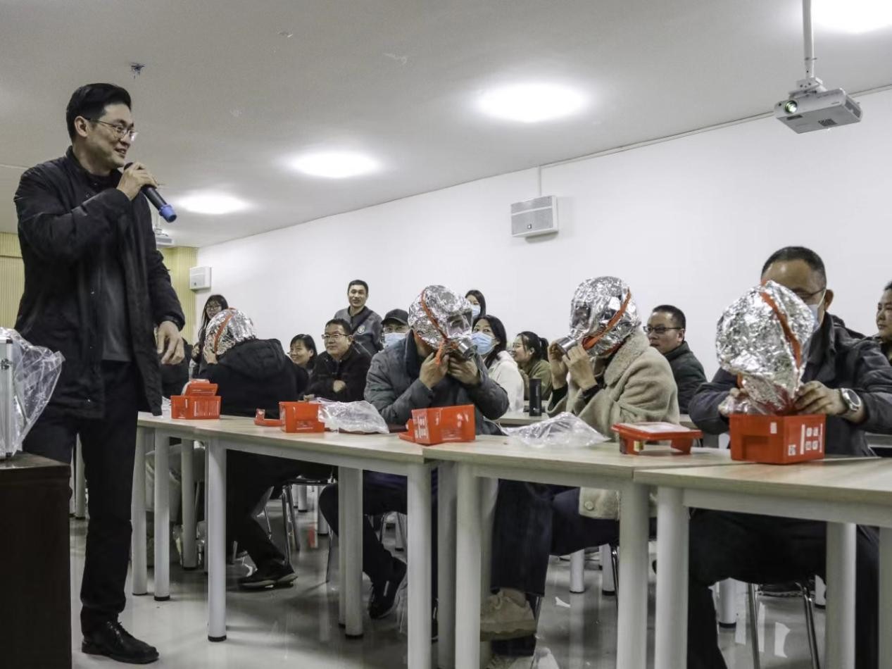 培训由张璞、丁玉涛两位老师为大家讲解了灭火器使用方法,防烟面罩的种类和功能,如何正确佩戴和使用防毒面罩,如何有效做到防患于未然,如何正确处理火情等知识。