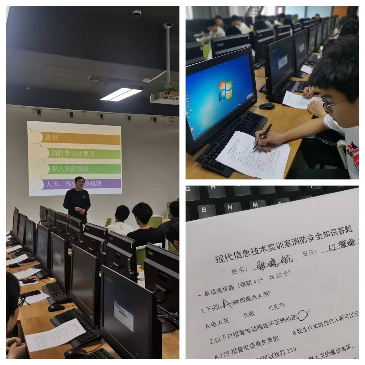 yl6809永利丁玉涛、李云帆两位老师对实训室用电安全、防火防盗等安全问题进行了详细的介绍,并讲解了消防器材的使用。同学们认真听讲,并完成了《实训室安全知识答题》,同时进行了消防安全疏散演习。