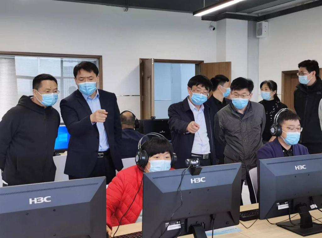 4日16日上午,河南职院2022年单招考试线上测试在yl6809永利综合实训大楼704、706实训室圆满完成。前期准备期间,董事长梅乐堂、副董事长肖珑、校工会主席夏喜利亲临现场指导检查工作,教务处、人才招聘处、信息中心等部门负责人陪同。