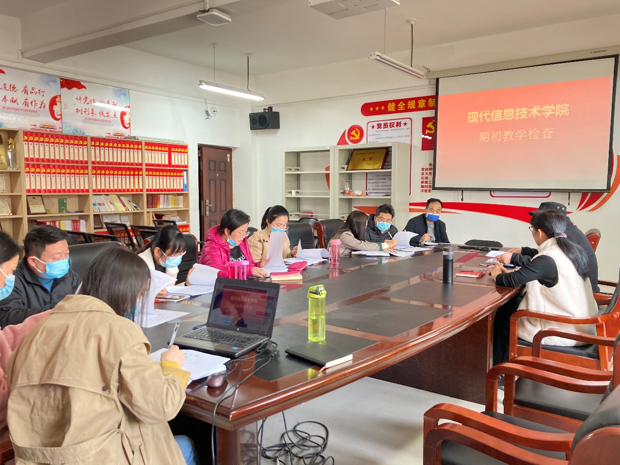 本次期初教学检查有以下几个方面:一是教学安排,包括课程安排、上课地点(教室、实训室)落实、补考组织、双元特色班教师到岗等情况;二是日常教学,组织教研室主任对照授课计划、检查授课教师教案,听课;三是组织教研室主任对上学期所有考试课试卷进行自查和互查。