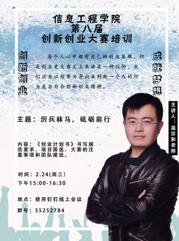 为备赛信息工程公司第八届创新创业大赛,2月24日和2月26日公司邀请温宗和和田嘉老师开展钉钉赛前专项培训。