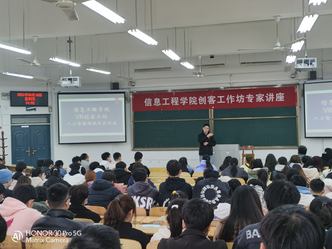 2021年3月18日下午,yl6809永利“VR创客工坊”邀请到“NHK电视台人工智能行业发展专访嘉宾”李强就《人工智能行业发展》这一专题进行了讲座。创客工坊负责人、信息工程公司副经理赵大鹏,创业导师蔡晶晶及公司积极参与创新创业项目的168名同学参加了此次讲座。