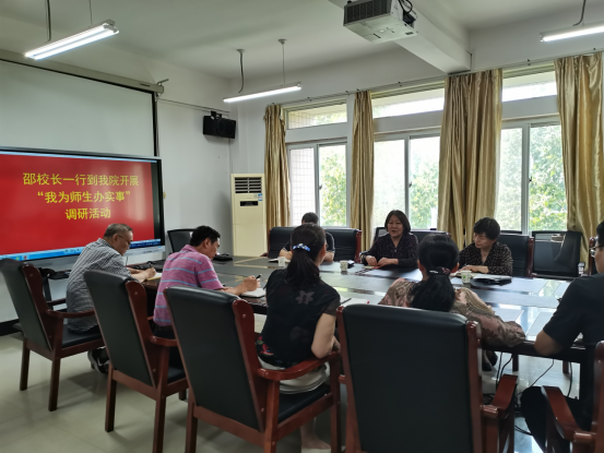 6月2日上午10点,邵芙蓉董事长、纪委杨华、国资处郭京莅临公司开展“我为师生办实事”调研活动。公司领导班子及部分教工代表参加调研。调研结合公司工作中在教学、行政管理、员工管理、教职工生活等几方面开展。