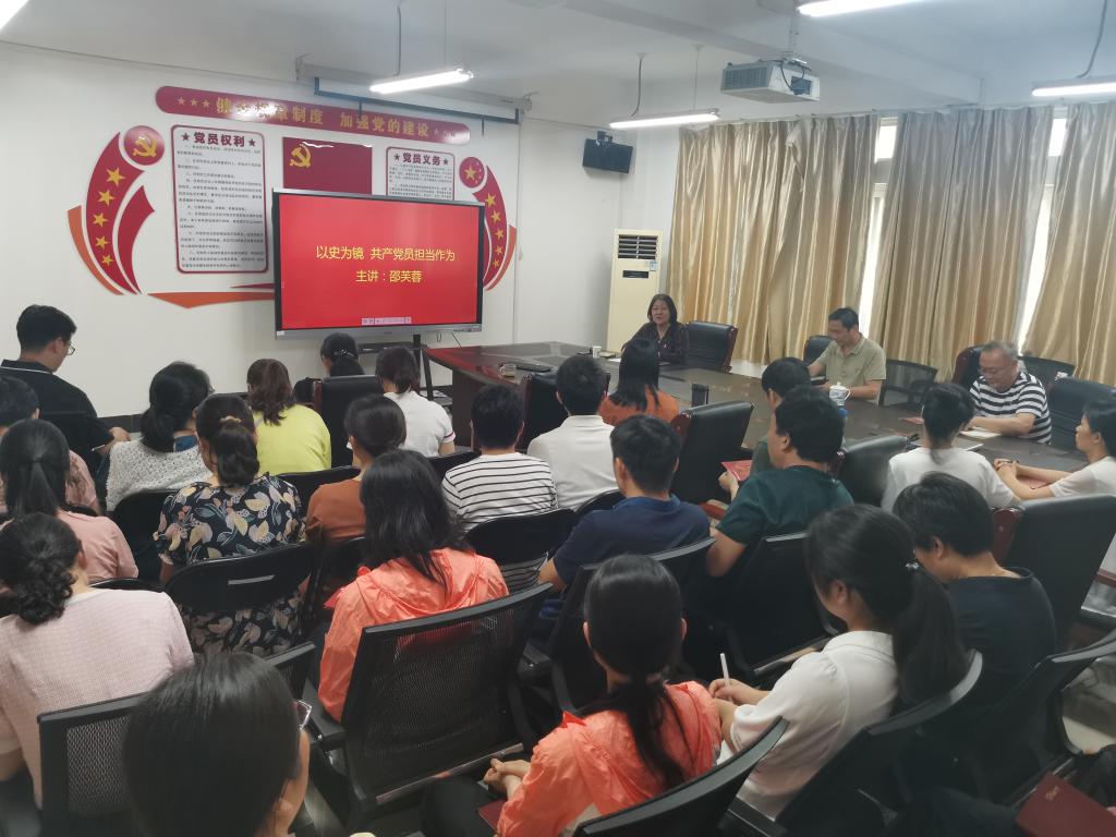 6月28日下午,公司领导邵芙蓉副经理以《以史为镜,共产党员担当作为》为题,为公司全体教师党员讲授了党史学习教育专题党课。