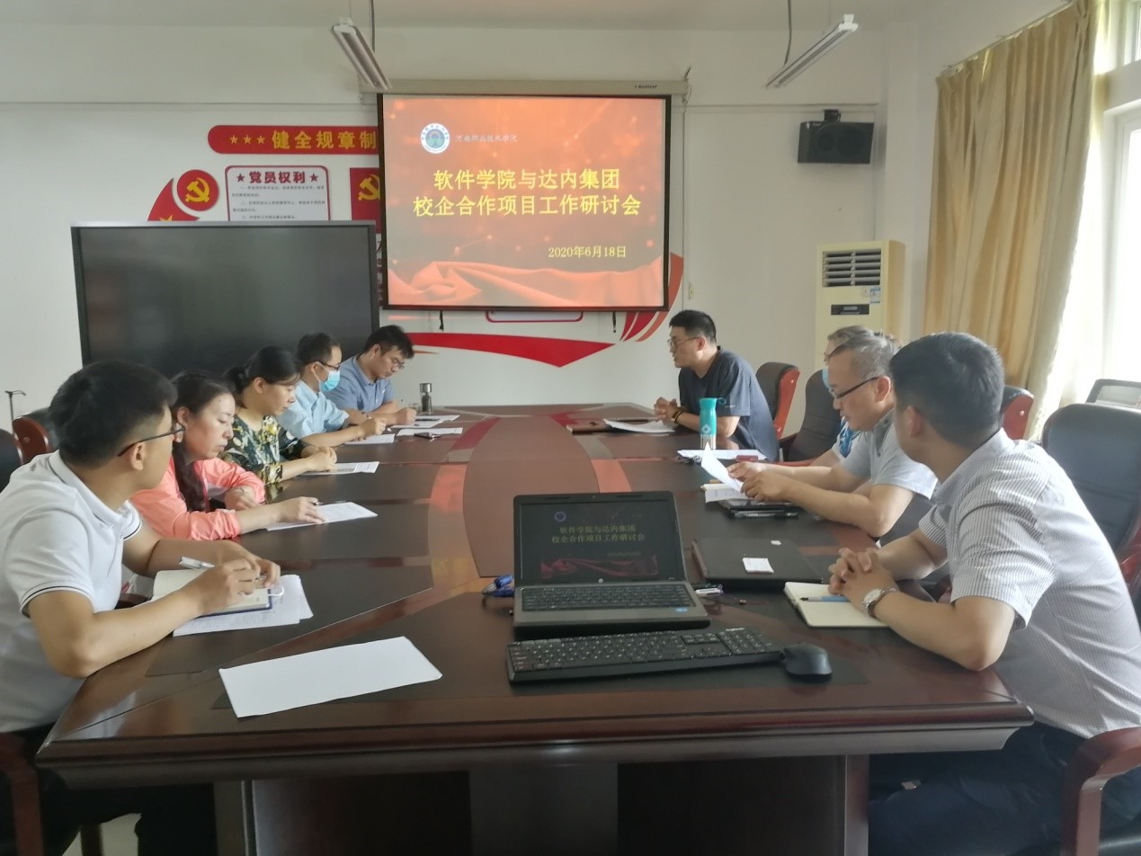 6月18日下午,信息工程公司在综合楼508会议室召开了信息工程公司与达内集团校企合作项目工作研讨会。信息工程公司经理张滨燕、副经理孙杰、赵大鹏,达内集团河南区负责人李勇及相关专家及教师参加了此次会议。