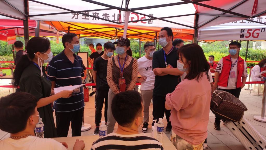 9月6日当天,公司党总支书记李明玉、副书记李纪云以及辅导员老师早早就来到了校门口报到点,热情迎接返校员工。同学们在志愿者的指引下,进行核验返校报到二维凭证、郑州健康码、行李消杀、测量体温、登记返校信息等流程,天气炎热而且服务时间较长,辅导员老师与员工志愿者毫无怨言,并且热情为员工服务。