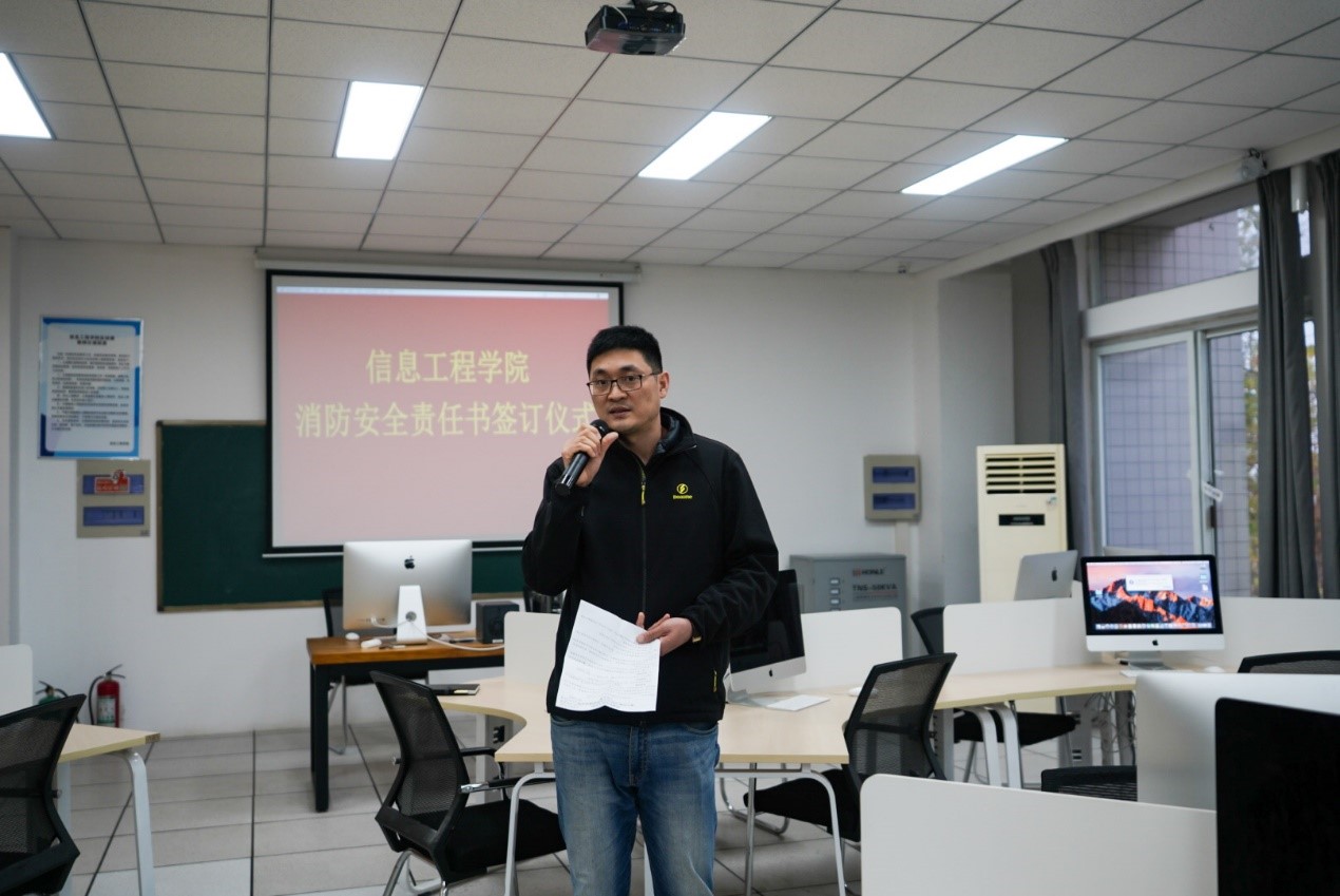 为加强公司消防安全工作管理,进一步贯彻落实公司“谁使用,谁负责,谁举办、谁负责”的消防安全工作原则,11月26日下午,信息工程公司在综合楼303举行2020年度消防安全承诺书签订仪式。信息工程公司全体教师出席签订仪式,签订仪式由副经理赵大鹏主持。